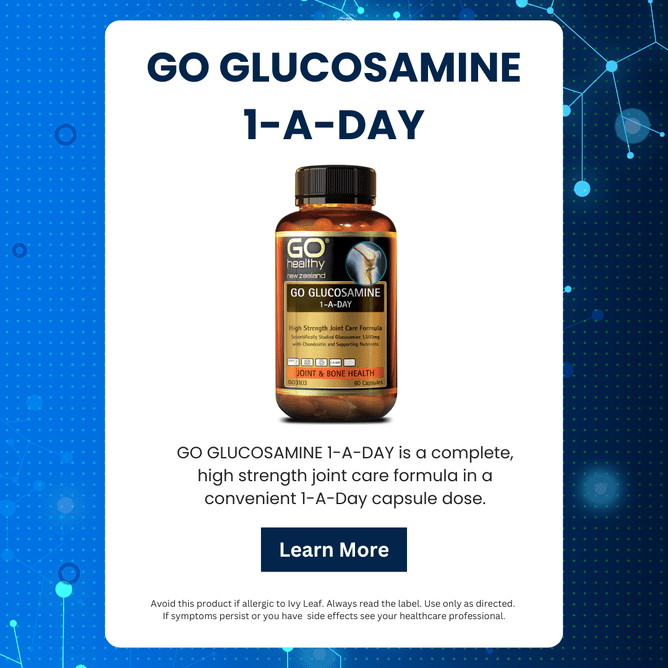 GO GLUCOSAMINE 1-A-DAY is a complete, high strength joint care formula in a convenient 1-A-Day capsule dose. Each capsule contains a full dose of scientifically studied Glucosamine Sulfate 1,500mg plus Chondroitin and potent supporting nutrients.